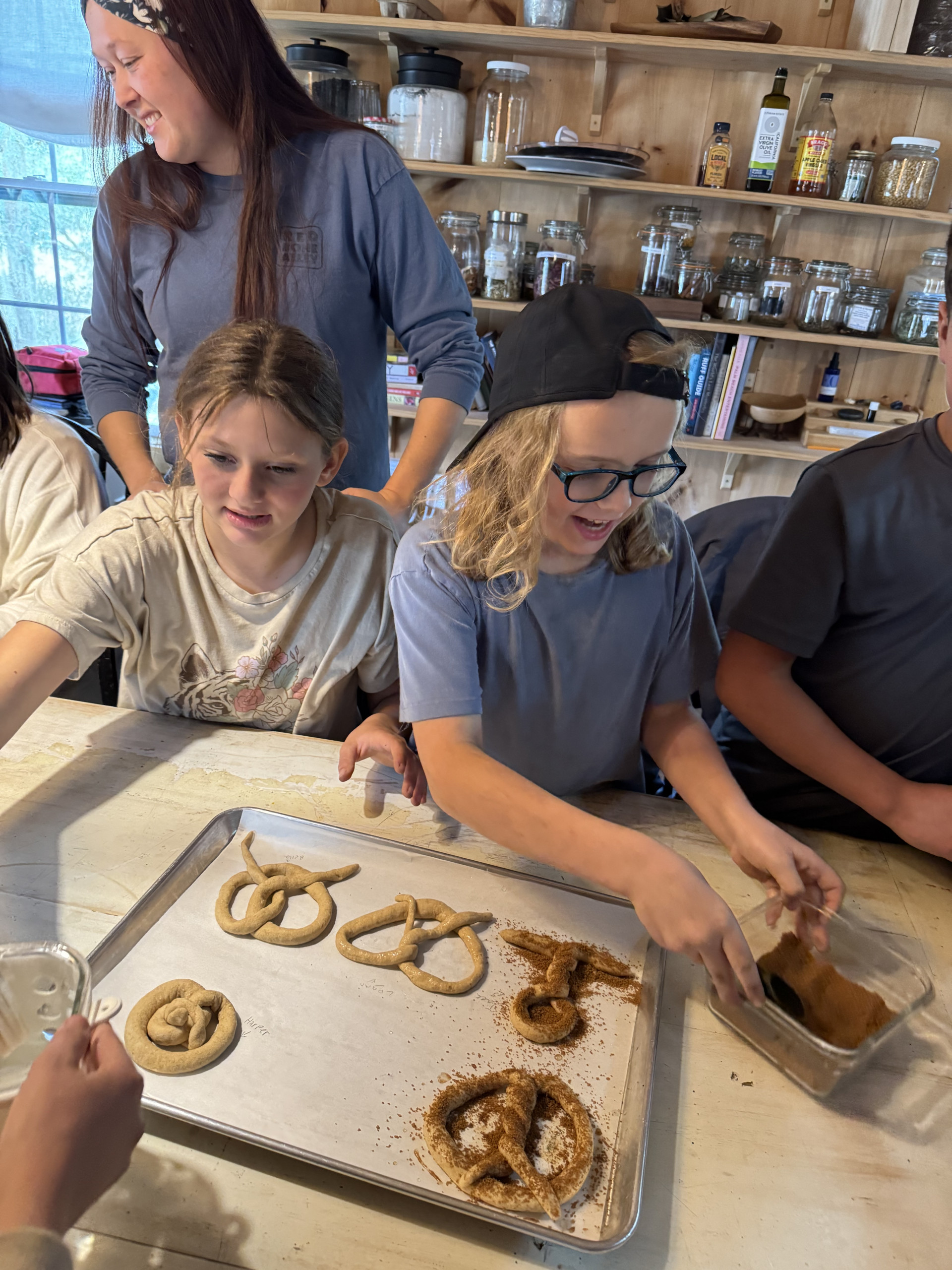 Our daily schedule comprises focused academic lessons in the morning, followed by practical arts in the afternoon. Practical arts involve the hands-on application of knowledge gained during the academic morning blocks. Concepts such as chemistry come to life in blacksmithing, fractions are applied in cooking, geometry finds expression in leatherworking, and physics unfolds through the art of archery.